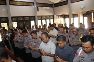 Selain sholat ghaib, jajaran Polres Sumenep juga menggelar doa bersama sebagai bentuk solidaritas dan penghormatan atas jasa para anggota yang gugur dalam tugas.