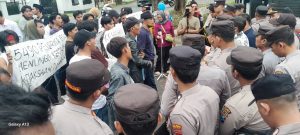 Di bawah pengawalan ketat aparat kepolisian, massa menyuarakan tuntutan agar Kejari tidak hanya menjadi penonton atas laporan-laporan masyarakat yang menumpuk tanpa kejelasan tindak lanjut.