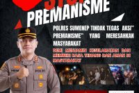 SUMENEP, (TrendiKabar.com) – Polres Sumenep menegaskan komitmennya dalam menjaga keamanan dan ketertiban masyarakat (Kamtibmas) dengan menindak tegas segala bentuk aksi premanisme yang meresahkan warga…